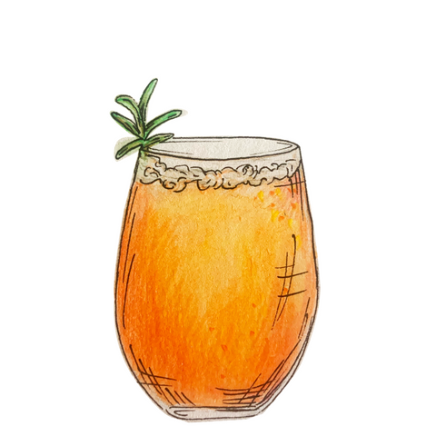 Garnish with a wheel of orange and sprig of rosemary.