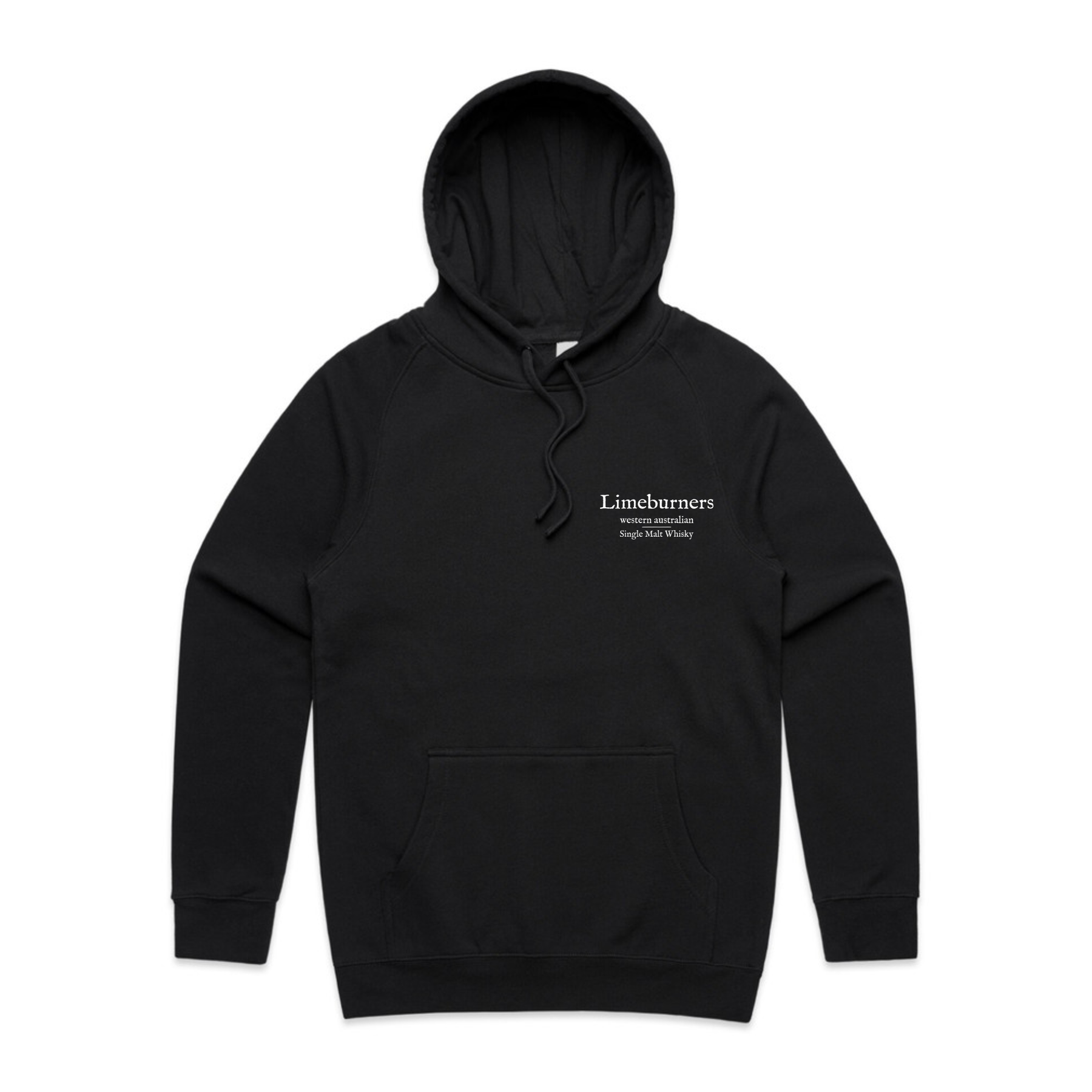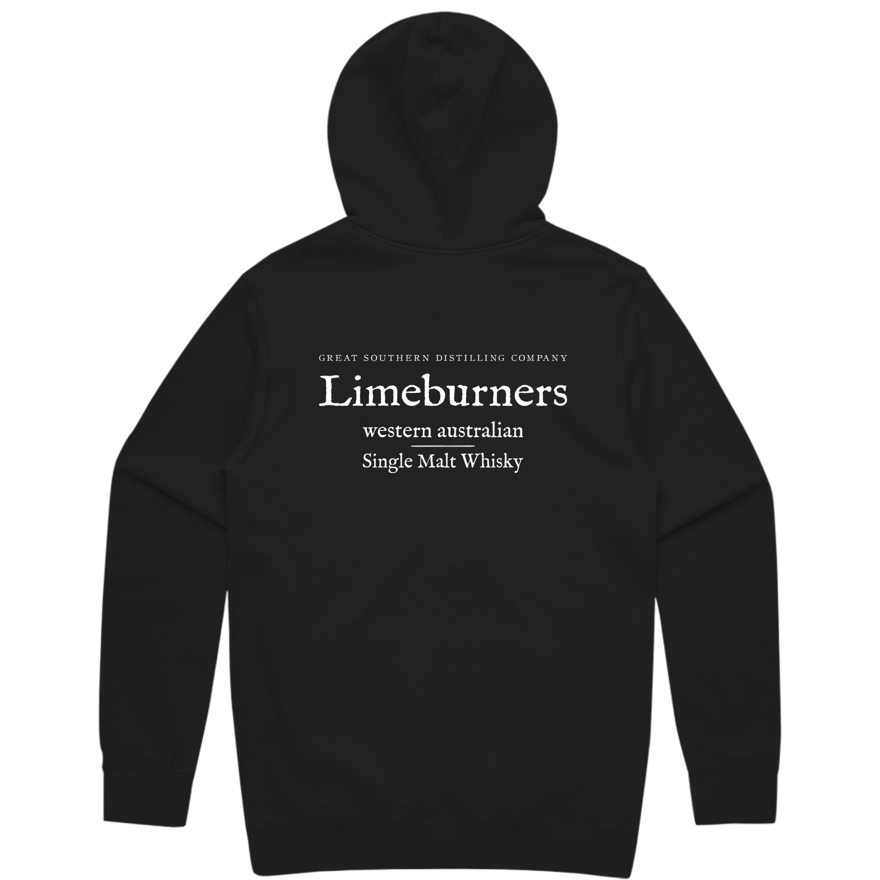 Relaxed unisex black hoodie featuring the Limeburners logo on both the front and back.