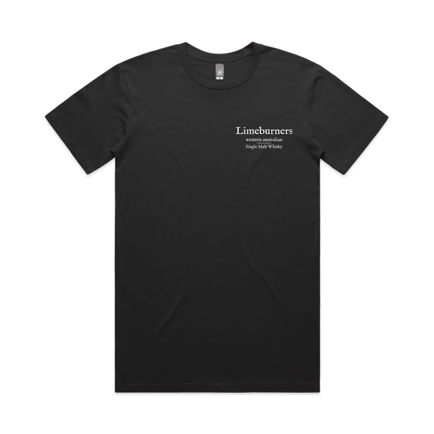 Unisex black t-shirt featuring the Limeburners logo on both the front and back.